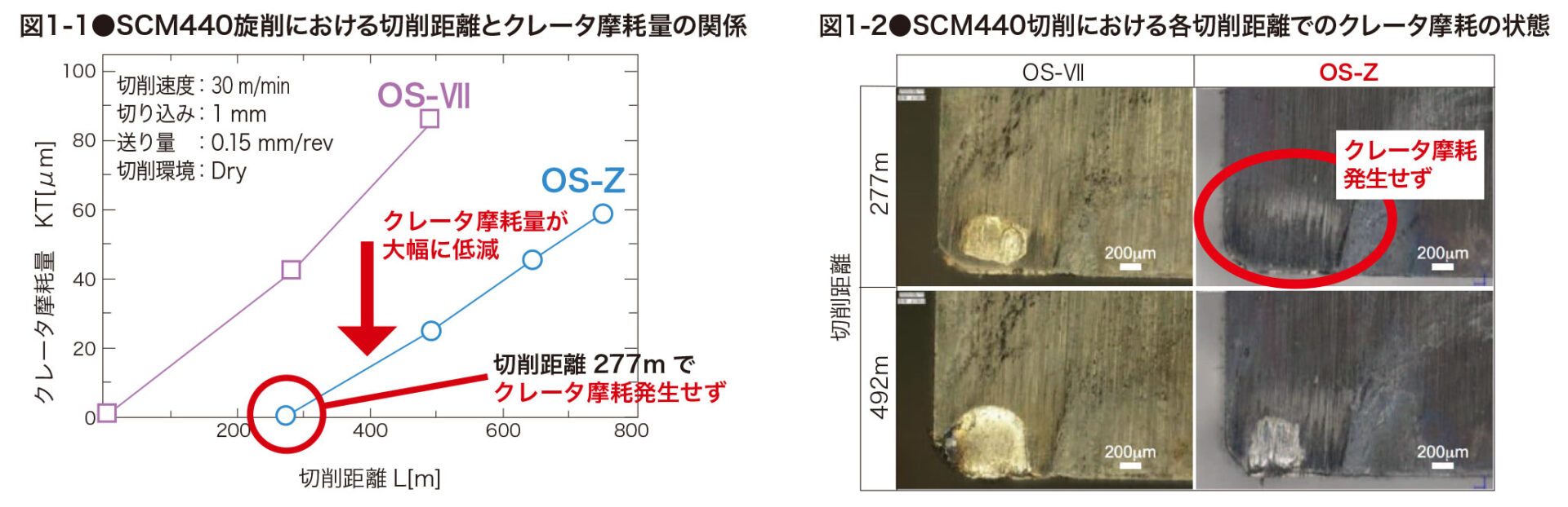切削長277mでOS-Zはクレータ摩耗発生せず